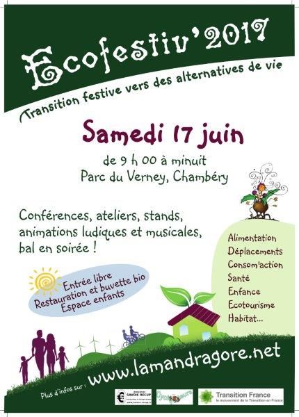 Dans le cadre de la promotion de l’écologie et des alternatives de vie solidaires et respectueuses de notre environnement, l’association Chambérienne La Mandragore avec la participation de plus de 60 associations dont Attac Savoie et acteurs locaux, organise, le 17 juin 2017, la huitième édition de l’Ecofestiv’, la fête de l’écologie et des alternatives de vie. Rappelons qu’en 2015, plus de 1500 personnes ont participé à l’événement.